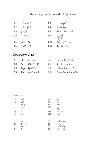 Multipliying And Dividing With Algebra Basic Practice Teaching Resources